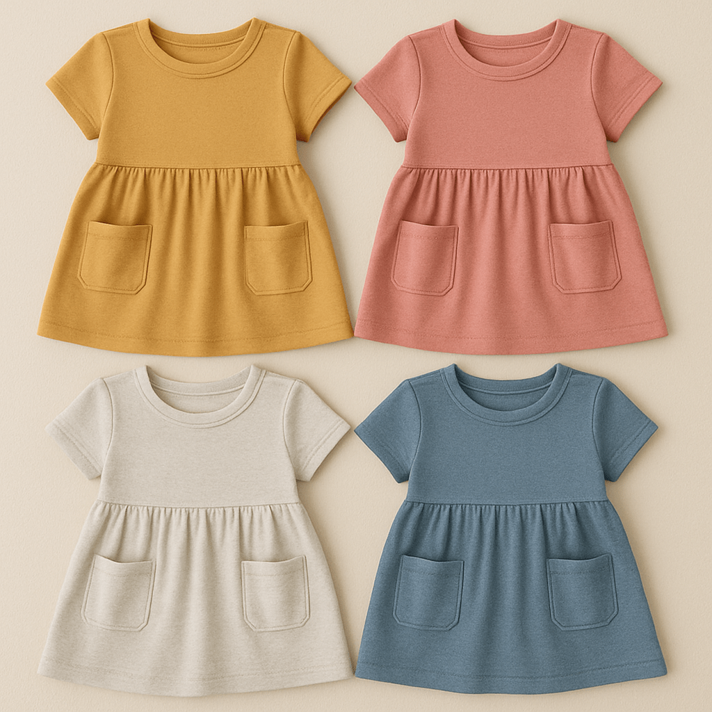 - Why moms love it: Easy one-piece outfit, no fuss. Pockets make them functional (perfect for snacks, little treasures, or hair ties).