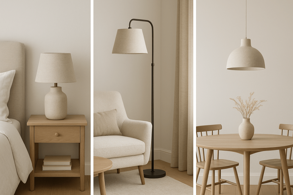 The right lighting sets the mood. Affordable rattan lamps, ceramic bases, or simple white drum shades add warmth without being flashy. Swap in warm white bulbs to make the space cozy and inviting.