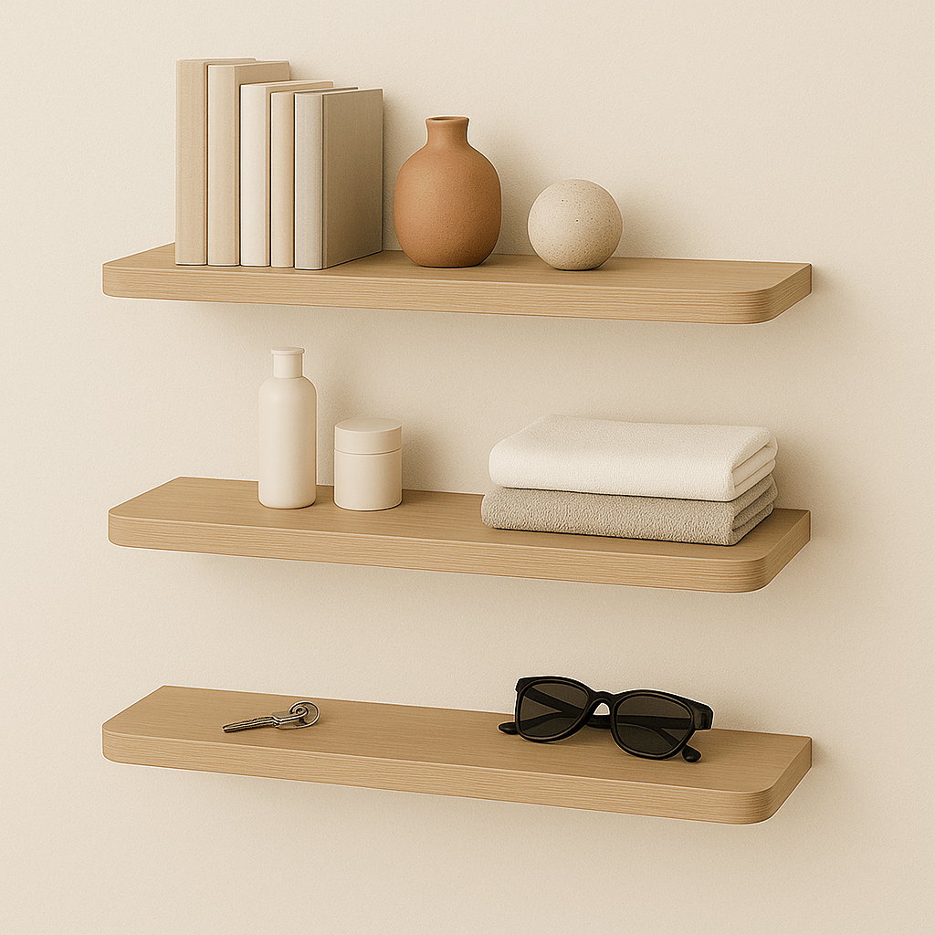 - Use Amazon floating shelves in the living room for books and décor.